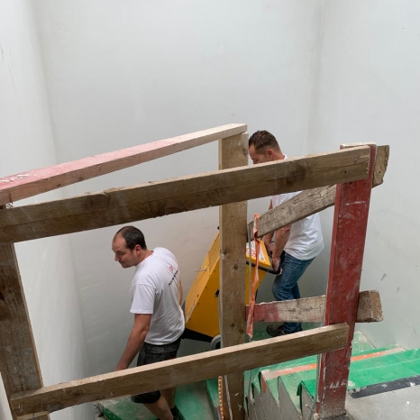 De deadline voor oplevering van dit appartementsgebouw kwam in het gedrang . Door de inzet van 7 Bouwdrogers DF400 in combinatie met 7 krachtige ventilatoren van het type TTV4500 konden we hier versneld gaan drogen. Dankzij deze interventie konden de keukens, binnendeuren en parket zonder vertragingen van de planning geplaatst worden .